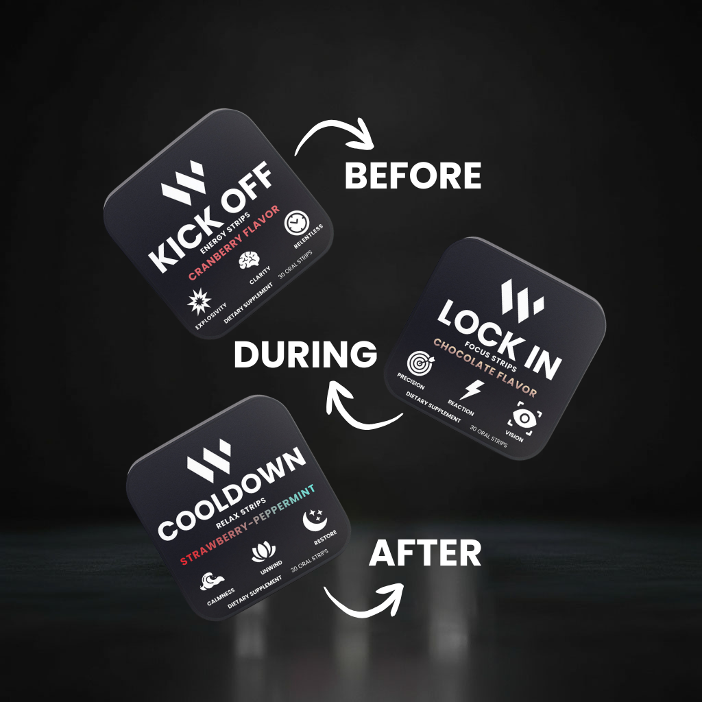 | KICK OFF | 30 mins before match or training | Clean energy, clarity, reaction without the crash |