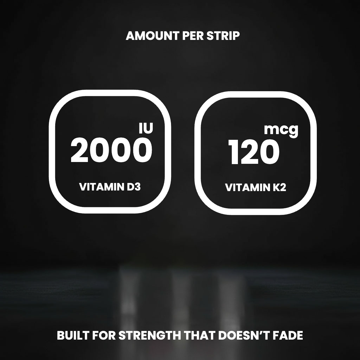 Each fast‑dissolving, raspberry‑flavored strip combines Vitamin D₃ and Vitamin K₂, nutrients that work together to help maintain normal calcium absorption and support your body’s natural bone‑maintenance process.