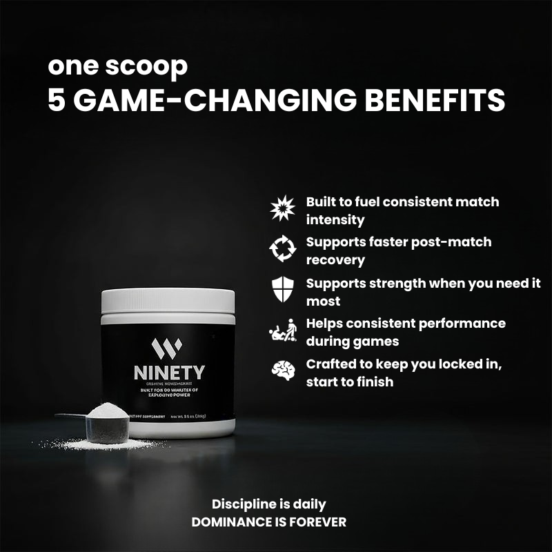 NINETY fuels players who refuse to fade when the pressure rises. Every scoop charges your muscles with the same energy system pros rely on, so you stay strong, sharp, and unshakable until the final whistle.